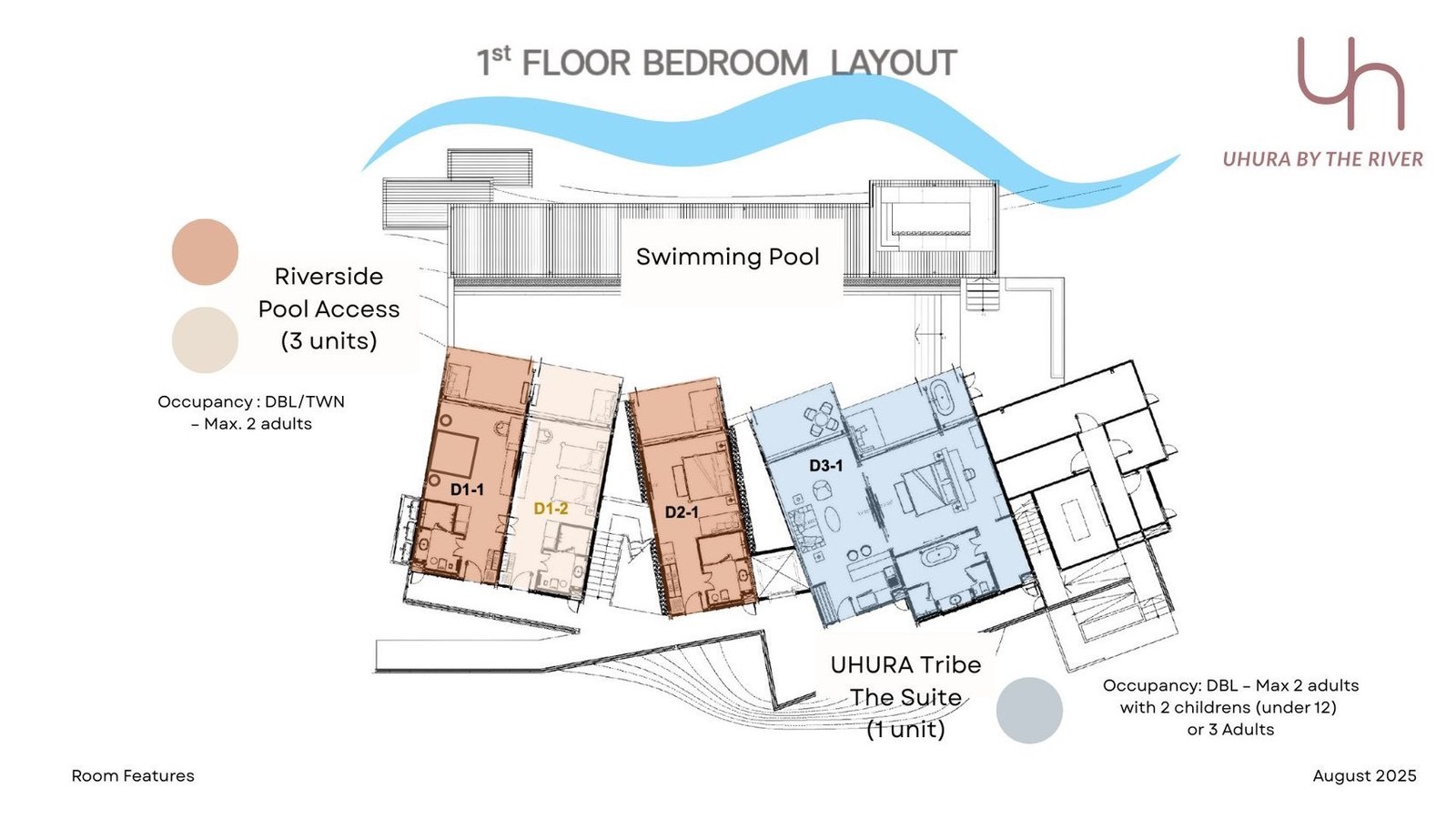 Slide open your door and step right into bliss. Your spacious terrace, complete with a cozy outdoor sofa, leads directly to the pool beside the river. The Riverside Deluxe Pool Access blends leisure and nature, letting you enjoy the river views while staying just steps away from the water.